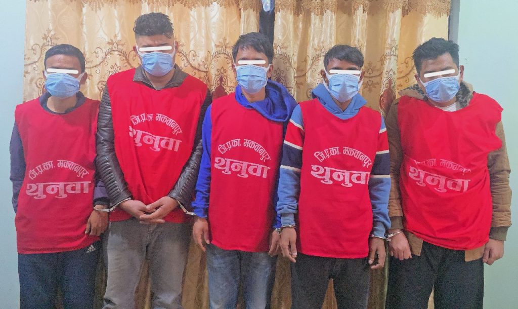 यस्तै, विहीबार दिउँशो ३ बजे पूरानो मकवानपुर रोडस्थित शिशिर राजथलाको घरमा छापा मारेर ४ ग्राम लागुऔषधसहित थप ५ जनालाई पक्राउ गरिएको छ । पक्राउ पर्नेहरूमा ३१ वर्षीय शिशिर राजथला, ३० वर्षीय निरन श्रेष्ठ, ३५ वर्षीय सुदिप भुर्तेल, हेटौंडा–४ निवासी ३० वर्षीय असिम कुमार बर्तौला र हेटौंडा–१ निवासी ३० वर्षीय ओम साह रहेका छन् । पक्राउ परेकाहरुमाथि लागुऔषधसम्बन्धी मुद्दामा अनुसन्धान अघि बढाइएको प्रहरीको भनाई छ ।